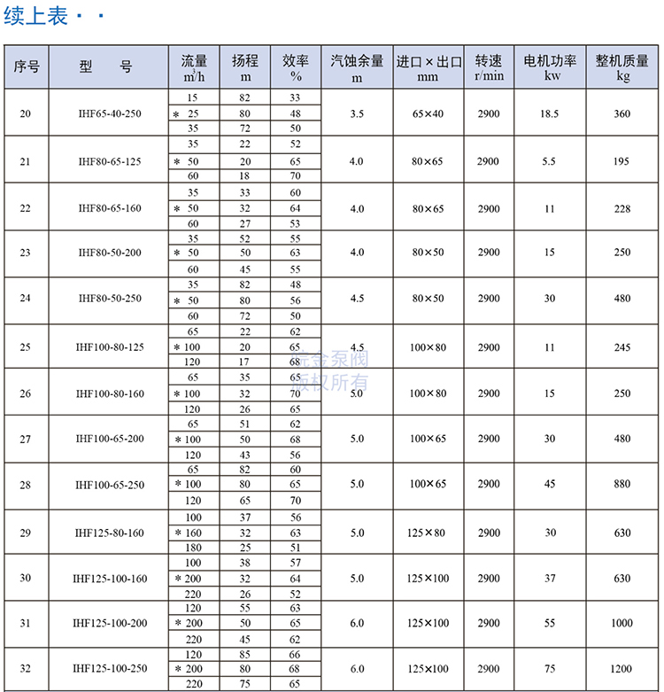 皖金泵閥氟塑料離心泵主要參數(shù):