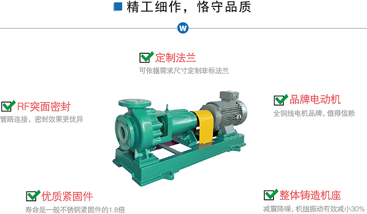 氟塑料離心泵又稱其為塑料離心泵、襯氟離心泵、耐腐蝕離心泵,IHF-J氟塑料離心泵長(zhǎng)支架型和短支架型。氟塑料離心泵另有:IHF-D短支架型、FSB-J長(zhǎng)支架型、FSB-D短支架型、GDF立式管道離心泵。 IHF-J氟塑料離心泵按照國(guó)標(biāo)工藝標(biāo)準(zhǔn)設(shè)計(jì)制造,是本公司全新升級(jí)產(chǎn)品,材質(zhì)采用鋼襯氟塑料,可以輸送任意濃度的腐蝕性介質(zhì),特點(diǎn)是外殼鑄鋼,可以承受管道壓力,過(guò)流部件采用內(nèi)襯耐腐蝕性能材料氟塑料材質(zhì)制成,性能優(yōu)越,是現(xiàn)在化工、環(huán)保、醫(yī)藥、造紙等需要輸送腐蝕性介質(zhì)場(chǎng)合的重要組成部分。