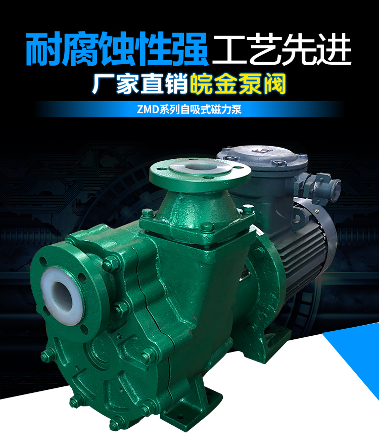 氟塑料磁力自吸泵又稱其為氟塑料自吸磁力泵、襯氟磁力自吸泵、耐腐蝕自吸化工泵,ZMD襯氟磁力自吸泵具有磁力泵的特性,同時兼具良好的自吸功能。氟塑料自吸泵另有:FZB-L氟塑料離心自吸泵(長支架型)、FZB-D氟塑料離心自吸泵(短支架型)。