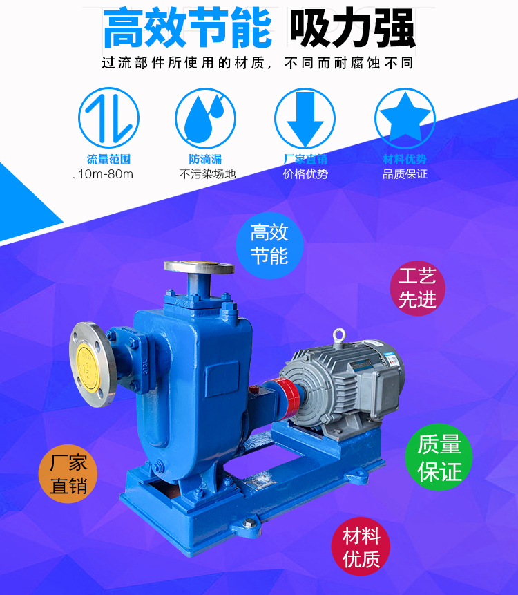 1、該自吸泵屬自吸式自吸泵,它具有結(jié)構(gòu)簡(jiǎn)單、操作方便、運(yùn)行平穩(wěn)、維護(hù)容易、效率高、壽命長(zhǎng),具有較強(qiáng)的自吸能力等優(yōu)點(diǎn)。管路中不需底閥,工作前只需保證泵體內(nèi)儲(chǔ)有定量引油即可。用于油輪或輸水船舶上時(shí),可兼作掃艙泵,掃艙效果良好,