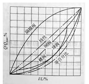 隔膜閥的流量特性接近快開特性,蝶閥的流量特性接近等百分比特性,閘閥的流量特性為直線特性,球閥的流量特性在中啟閉階段為直線,在中間開度的時候為等百分比特性。